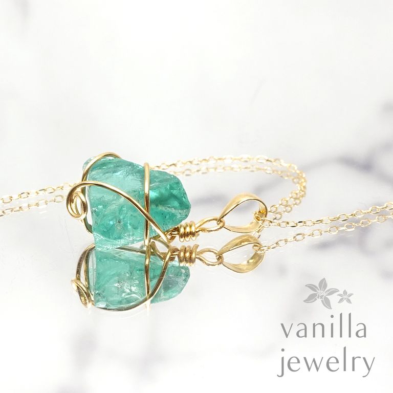 La verite(ラヴェリーテ) ネオングリーンアパタイト K18ネックレス [7756]★今だけ!40cmチェーン→「スライドピンチェーン」にグレードアップしてお届け!★
